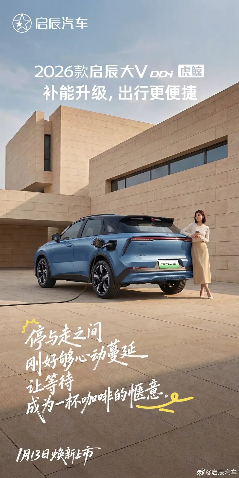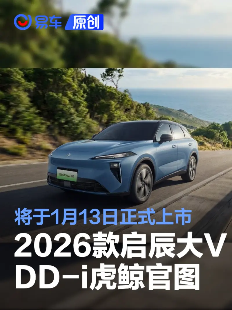 易车讯 今日,启辰汽车官方发布了一组启辰大V DD-i虎鲸官图。新车在续航、补能、油耗方面均获升级,将于1月13日正式上市。