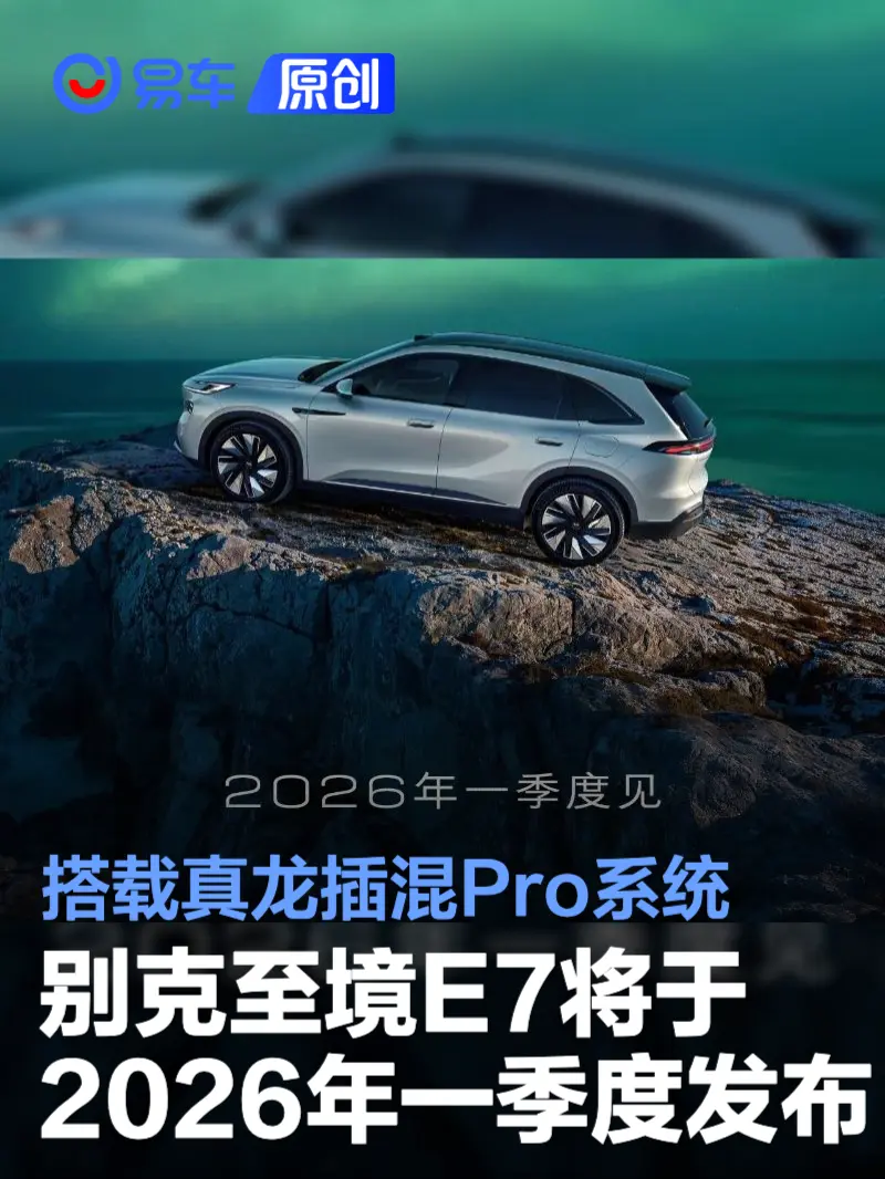 易车讯 1月13日,别克官方宣布旗下高端新能源子品牌“至境”首款SUV车型至境E7将于2026年第一季度发布。作为基于别克“逍遥”超级融合架构打造的SUV车型,至境E7是一款搭载高阶辅助驾驶、智能座舱以及“真龙插混Pro”混动技术的家庭大五座SUV。