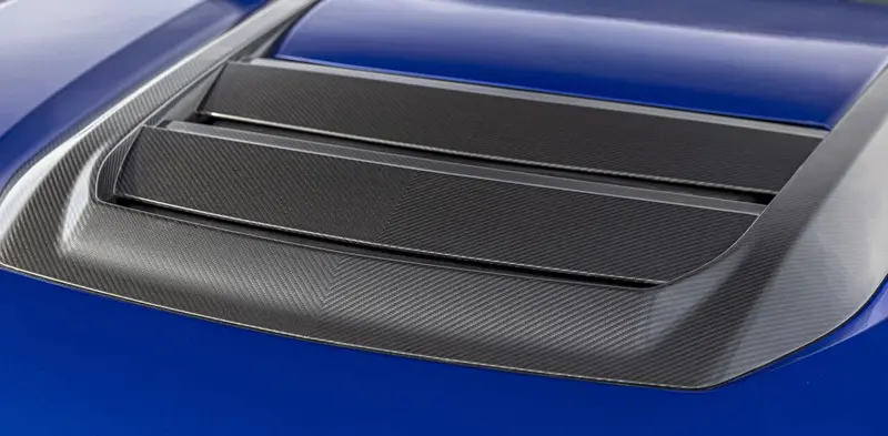 车尾部分,改进的后扩散器与平坦的底盘护板共同提升了空气动力学性能。赛道性能包带来了更广泛的空气动力学改进,采用鸭尾式设计替换后舱盖以增加下压力。新设计的后舱盖是升级版碳纤维尾翼的基础,尾翼配有外露碳纤维端板及轻量化碳纤维支架——后舱盖本身能将尾翼效率提升约10%,从而无需采用尺寸更大或迎角更高的尾翼