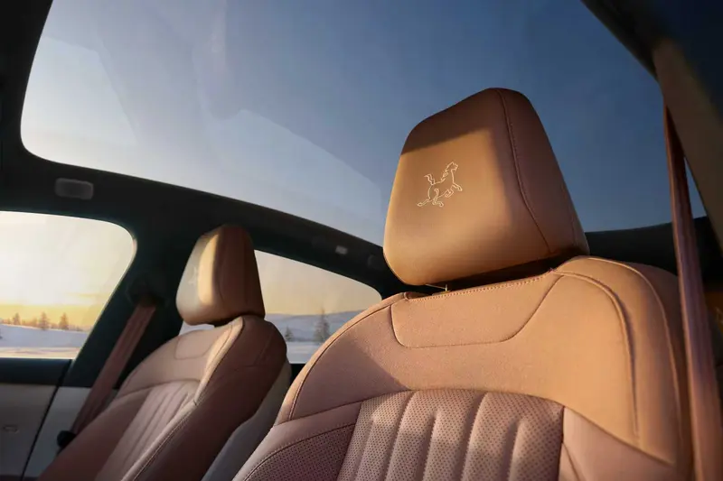 此外,新车在后排右侧折叠桌板、并拥有“马到成功”专属头枕刺绣、门槛饰条及车机主题。新车推出全新月榕棕与云缦米双拼Nappa内饰设计,并搭配月榕棕真皮方向盘,通过前排前后拼、后排上下拼接的错位双拼设计,营造“一车两面”的自在与精致。