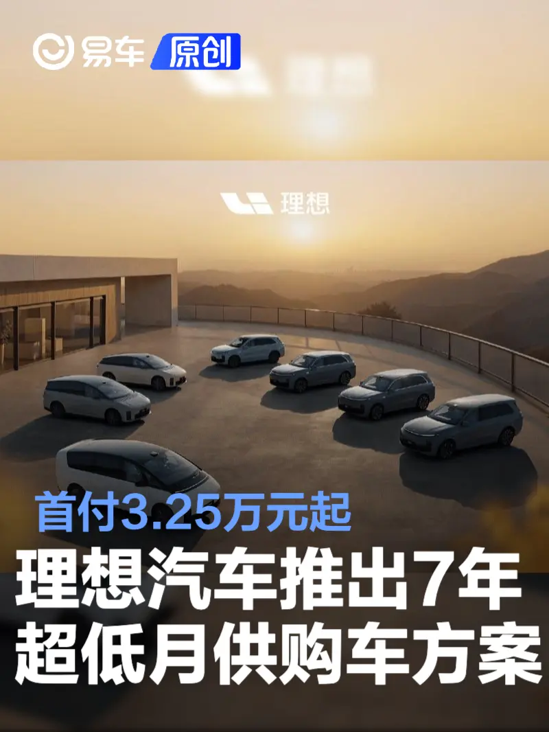 理想汽车推出7年超低月供购车方案 首付3.25万元起 2026-01-20 11:10 来源:汽车产经网 作者:易车原创报道 举报 易车讯 1月20日,理想汽车官方推出7年超低月供购车方案。2026年1月20日起购买理想汽车,可享7年超低月供购车方案:首付3.25万元起,月供低至2578元。 此外,理想MEGA、理想i8另有专属7年贷款方案,可享前三年免息,月供低至2857元。