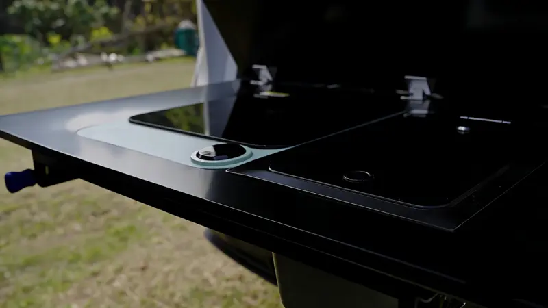 后备箱厨房作为核心配置,采用创新模块化下沉设计,兼顾功能与空间利用率。内嵌式电磁炉,功率匹配户外烹饪使用需求,加热均匀稳定,轻松胜任煎、煮、炖等多样料理;搭配可调节净菜池,秒变规整操作台,使用便捷顺手。