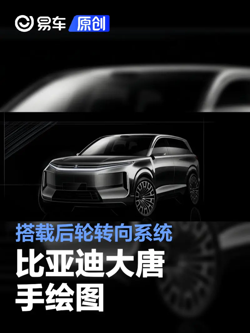 易车讯 我们从官方获取到了一组比亚迪D级旗舰SUV大唐手绘图。根据此前的消息,新车将配备后轮转向系统,并于上半年迎来上市。