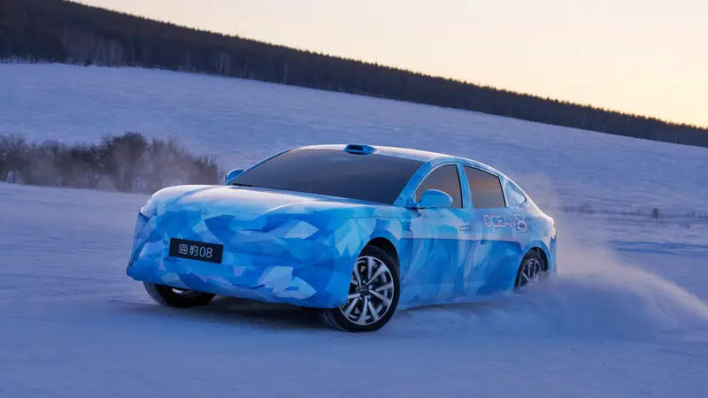 易车讯 我们从官方获取到了一组比亚迪海豹08冬季测试车型谍照。新车为比亚迪海洋网旗下最新旗舰轿车,或将配备兆瓦闪充、后轮转向等配置。据悉,新车将于一季度迎来正式亮相。