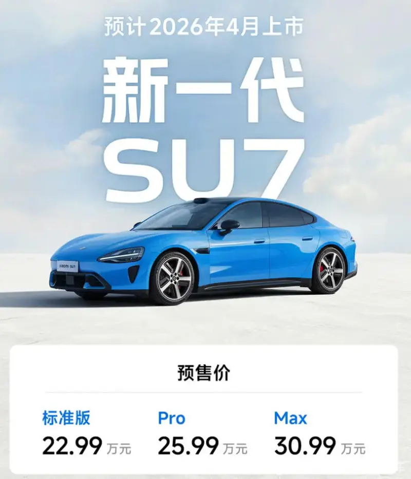 动力性能及操控方面,新款小米SU7推出标准、Pro版和Max版三个版本,拥有101.7kWh、96.3kWh、73kWh三种电池包可选。其中标准、Pro版配备752V高压平台,Max版配备897V高压平台。新车全系标配V6s Plus超级电机,标准版续航提升至720km,Pro版升级至902km,Max版从老款的810km升级至835km。Max车型仅需15min就可补能最高670公里。此外,Pro和Max车型还标配双腔空气弹簧和CDC减振器。
