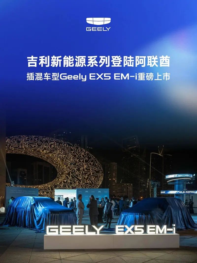 发布活动汇聚了当地政府、行业伙伴、媒体及经销体系的200余位重要嘉宾,现场介绍Geely EX5 EM-i的性能表现与真实使用场景体验。某媒体创始人完成了满油满电状态下的阿联酋全域路试,涵盖沙漠、戈壁、城市高速及市区拥堵等路况,夸赞车辆起步响应快,动力强、续航长、座椅舒适,有效缓解长途驾驶疲劳,同时还表示车辆具有远程控制功能,支持空调预启动,显著提升高温环境下的用车舒适性。