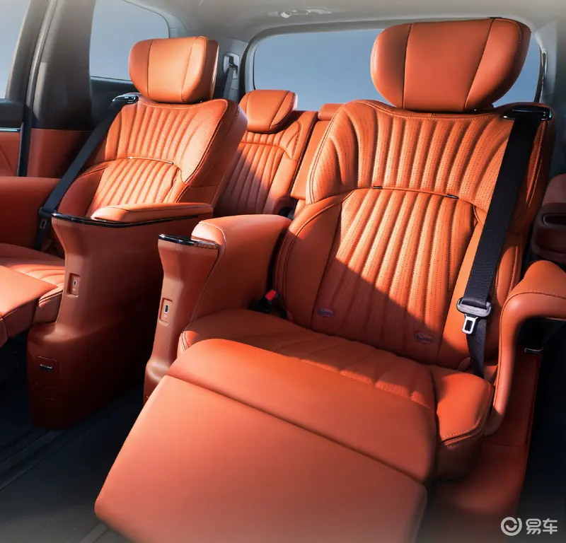 内饰方面,新车配备12.3英寸的全液晶仪表盘,并搭配三辐式多功能方向盘,中控台中间则配备14.6英寸的悬浮式多媒体触控屏。对于副驾座椅,新车还配备10点按摩、可伸缩腿托、4向座椅调节+4向头枕调节以及通风+加热+老板键。