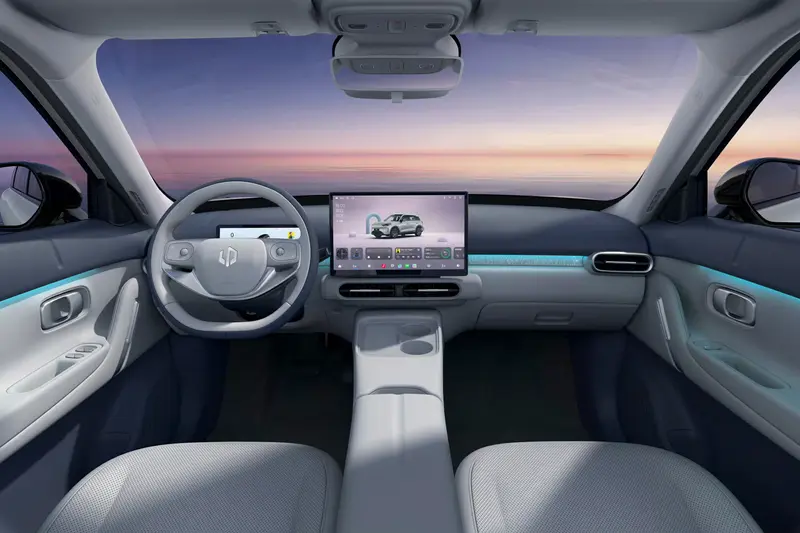 内饰方面,零跑A10采用了时下流行的简约化设计风格。零跑A10标配8.8英寸液晶仪表+14.6寸2.5K中控大屏,搭载SA8295座舱芯片+SA8650辅助驾驶芯片,AI“超级小零”接入通义千问语音大模型随时响应。其余配置方面,新车还搭载手机无线充电、前排双杯架,并采用怀挡设计。
