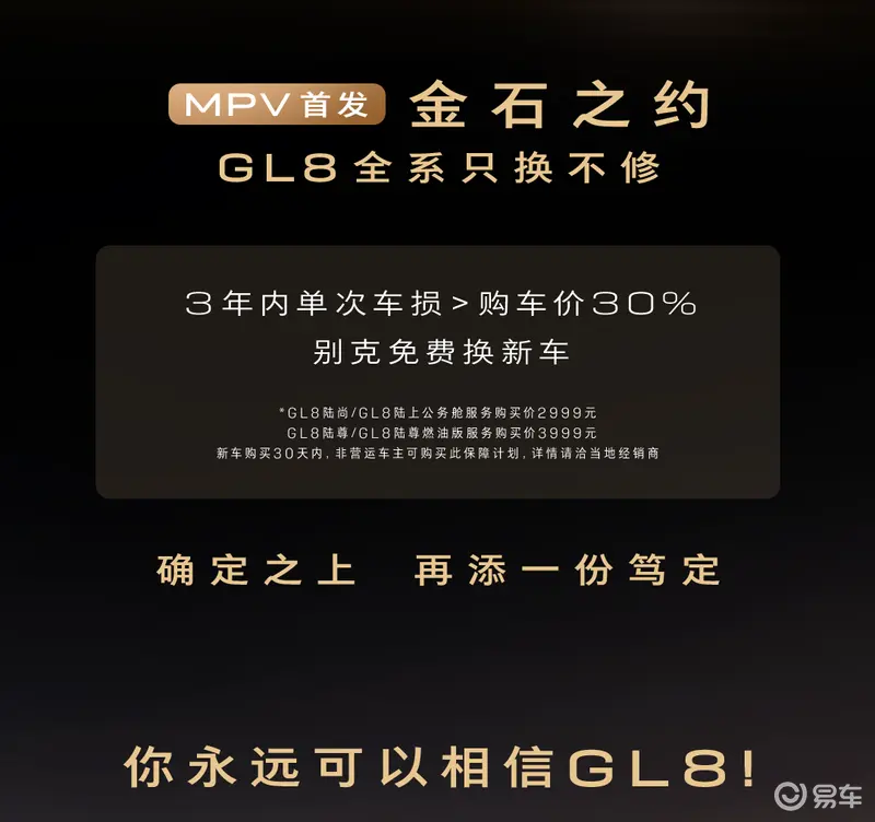 易车讯 3月2日,别克宣布旗下GL8家族新增金辉版,将搭载岁月鎏金专属配色。此外,官方还推出最新用户权益,3年单次车损大于购车价30%,官方将免费换新车。