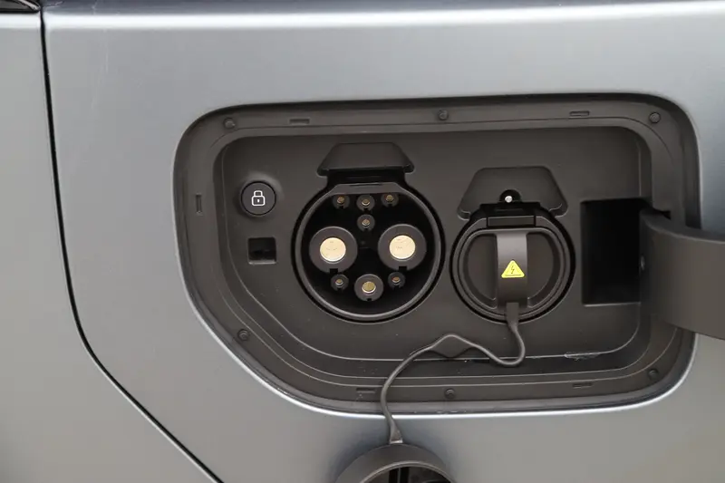 车身侧面,新车采用隐藏式的A、B、C、D柱营造出悬浮式车顶的视觉感,并配备外扩的轮眉。