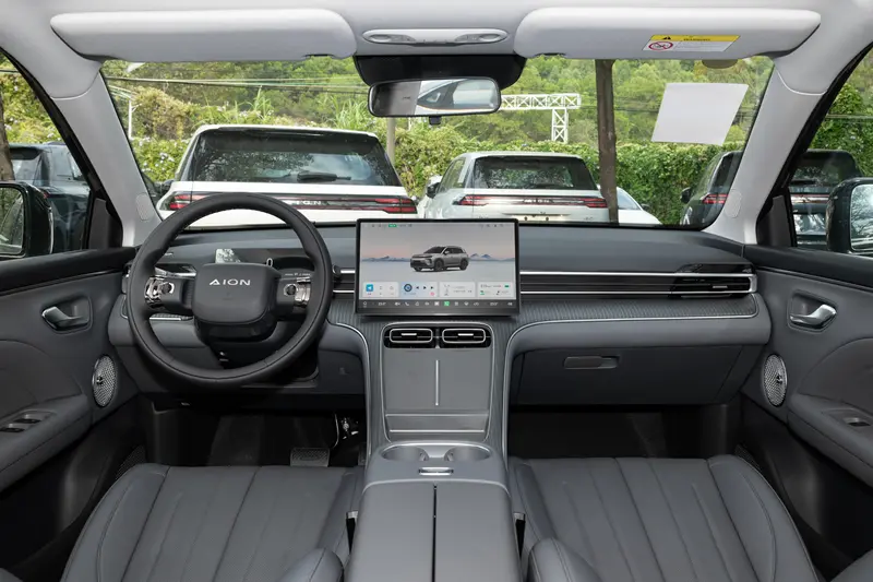 来到车内,新车依旧延续了新能源车的简约化设计风格,仪表盘与中央大屏均为悬浮式。在配置上,埃安i60国民增程210马到成功版配备六个安全气囊、广汽GSD智能驾驶辅助系统等配置,后排靠背还支持最大支持137°角度放倒,右侧还加入了小桌板等。