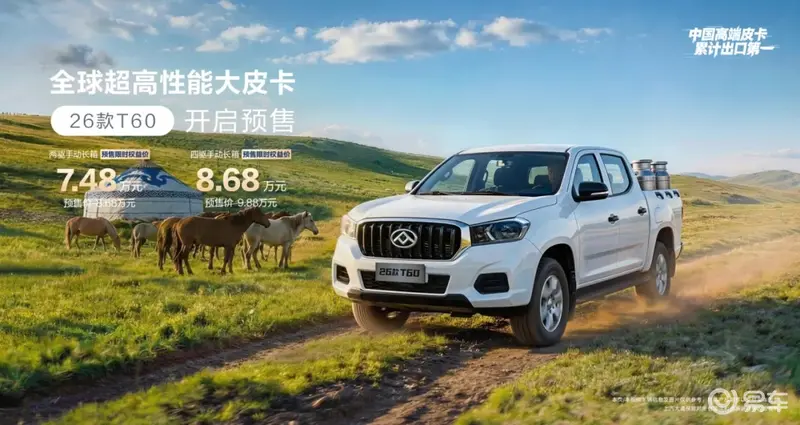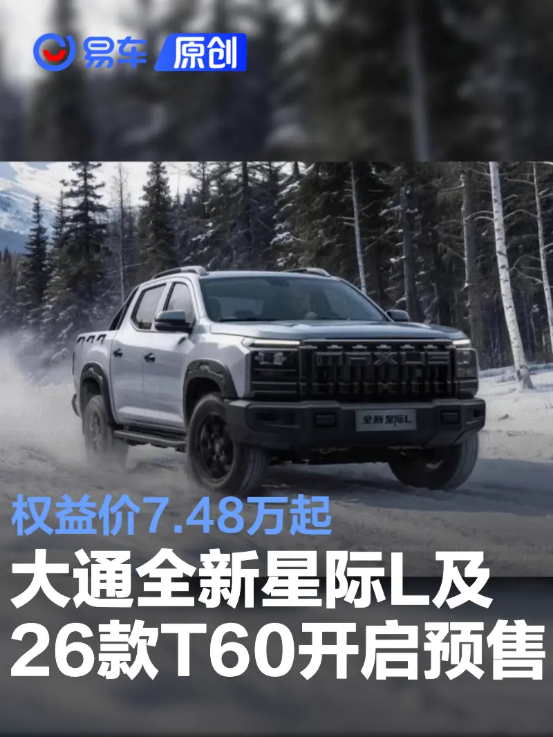 易车讯 今日,上汽大通旗下全新星际L、26款T60正式开启预售,预售限时权益价7.48万元起,更带来订金膨胀、增换购补贴、动力总成终身质保等六重预售权益。