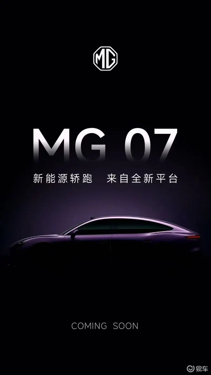 易车讯 3月10日,MG发布旗下首款纯电轿跑MG 07官图,新车基于上汽全新一代新能源平台打造,提供纯电、混动两种动力形式,将于今年第二季度正式亮相,预计售价20万元以内。