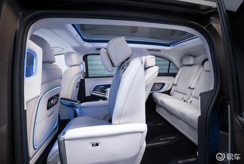 前排座椅与第二排电动调节尊享豪华座椅,均配备座椅通风、加热及按摩功能。第二排座椅在舒适头枕、杯架与无线充电功能之外,集成带按摩功能的腰部支撑与腿托,让乘客在放松休憩与高效办公间自如切换。第三排座椅同样配备加热功能,多区空调系统可迅速将车内温度调节至最适宜的状态;中控台内的双温控冷藏箱集成制冷、加热及UV紫外线消毒功能。