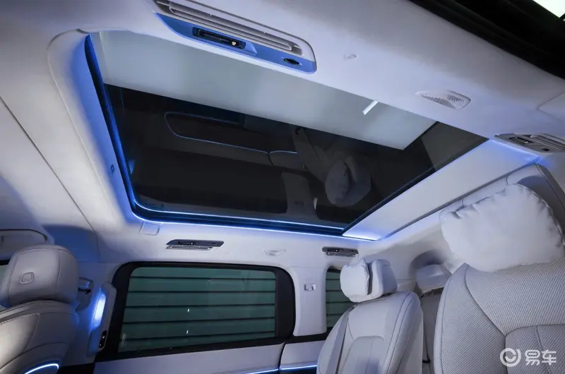 Sky View全景式天幕从B柱向后无缝延伸至车尾,令座舱更显通透开阔。全景式天幕与第二、三排车窗与尾窗均可配备电动遮阳帘,配合自驾驶舱延伸至第三排座椅的环境氛围灯,营造出“环抱式”座舱氛围。