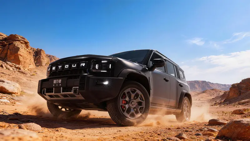 外观方面,新车整体继续延续了方盒子的造型设计,前脸配备了JETOUR立体格栅,时尚大气可发光。此外,新车采用了骊影黑哑光车漆,漆面哑光质感持久稳定,耐擦洗强度提升 50%,黑度提升 20%。