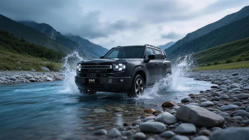 车身侧面,新车拥有高车身、富有肌肉感的轮眉以及笔挺的腰线,视觉效果突出。车漆方面,新车同样采用专属的骊影黑哑光车漆,通过微米级金属精雕工艺,实现“静态深邃,动态锋芒”双重质感。