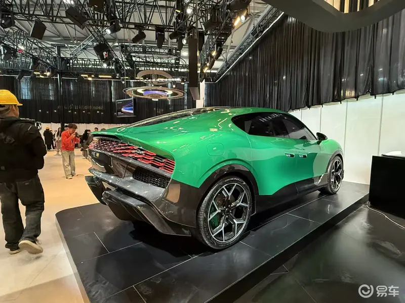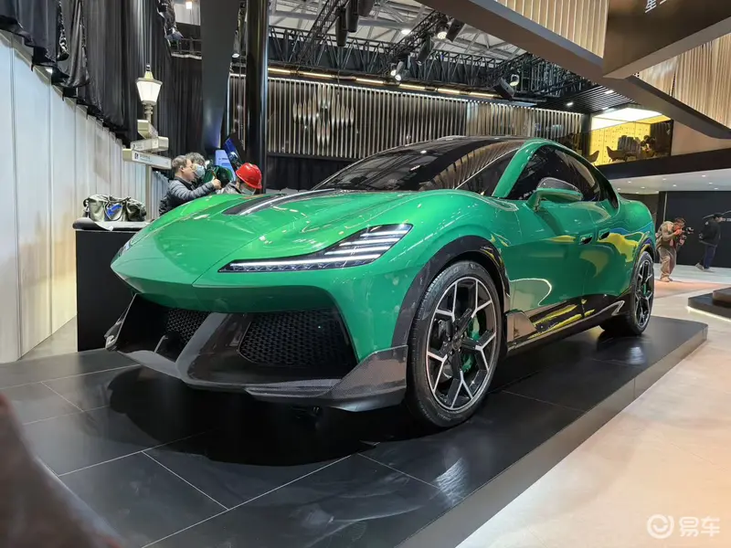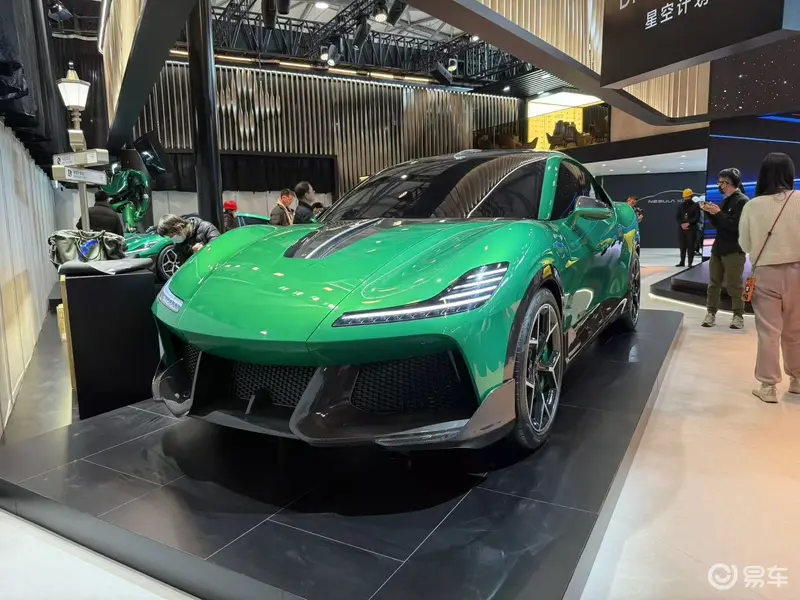 大灯方面,新车采用与Nebula NEXT 01概念车一致的L形灯组,点亮后科技感十足。隆起的前仓盖肌肉感十足,前脸下部则为大面积黑色蜂窝状格栅,配合造型夸张的碳纤维前唇,让前脸极具冲击力。