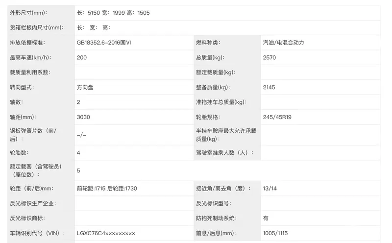 侧面来看,新车采用动感的溜背式设计,并配备了半隐藏式门把手。轮圈方面,新车配备了大尺寸的密辐式设计,营造出豪华氛围。车尾采用贯穿式尾灯,整车具有不错的科技动感。车身尺寸方面,新车长宽高为5150/1999/1505mm,轴距为3030mm。