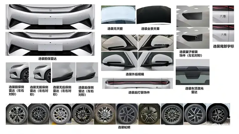 车身尺寸方面,新车长宽高分别为4866/1880/1495mm,轴距为2820mm,定位高于比亚迪秦L。尾部方面,新车采用了横贯式灯带,内部光源加入了优雅的丝带效果,中央还镶嵌了比亚迪车标,预计可以点亮以提升品牌辨识度。