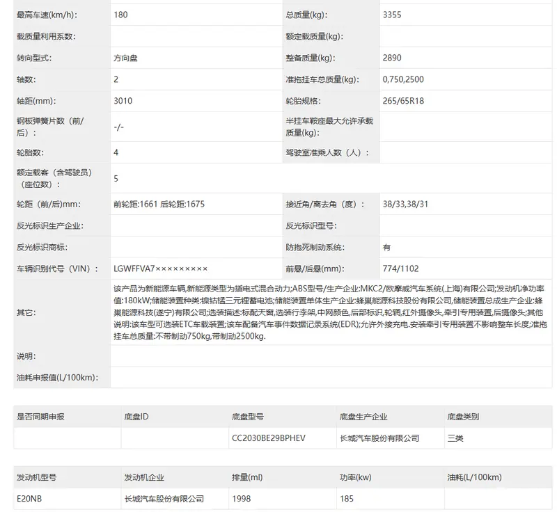 易车讯 日前,在工信部最新一期公告车型中,我们发现了新款坦克300申报信息。新车车头进行了全新设计,车身尺寸有所增加,动力方面搭载Hi4-T或Hi4-Z插电混动系统。