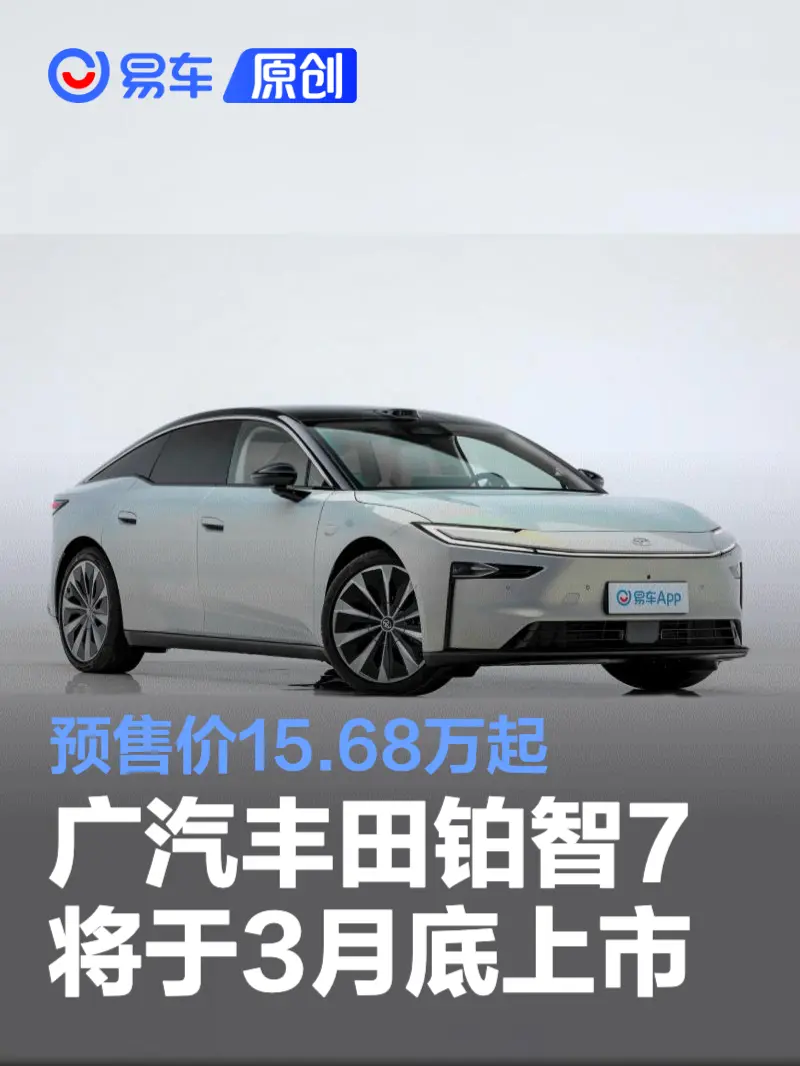 易车讯 我们从相关渠道获悉,广汽丰田铂智7将于3月底正式上市。铂智7已在3月5日开启预售,包含五款车型,预售权益价区间15.68-20.98万元。新车定位中大型纯电动轿车,配备满血版鸿蒙座舱、智能预瞄双腔空悬、Momenta R6智驾辅助及双电机零重力座椅等配置。