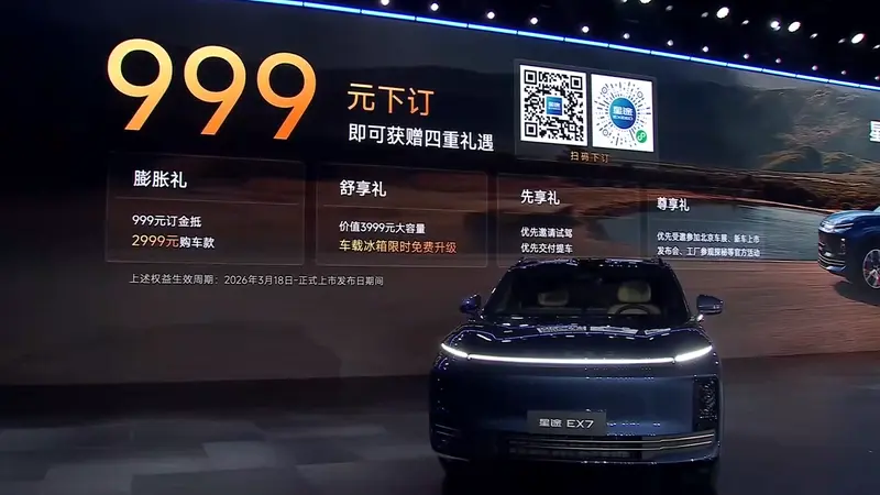 易车讯 3月18日,在奇瑞电池之夜上,星途EX7宣布正式开启全球盲订,999元订金可抵扣2999元购车款。新车将提供增程和纯电两种动力供选择,并首搭载航空级纯机电线控制动系统(EMB)。官方表示,新车将于4月中旬开启预售。