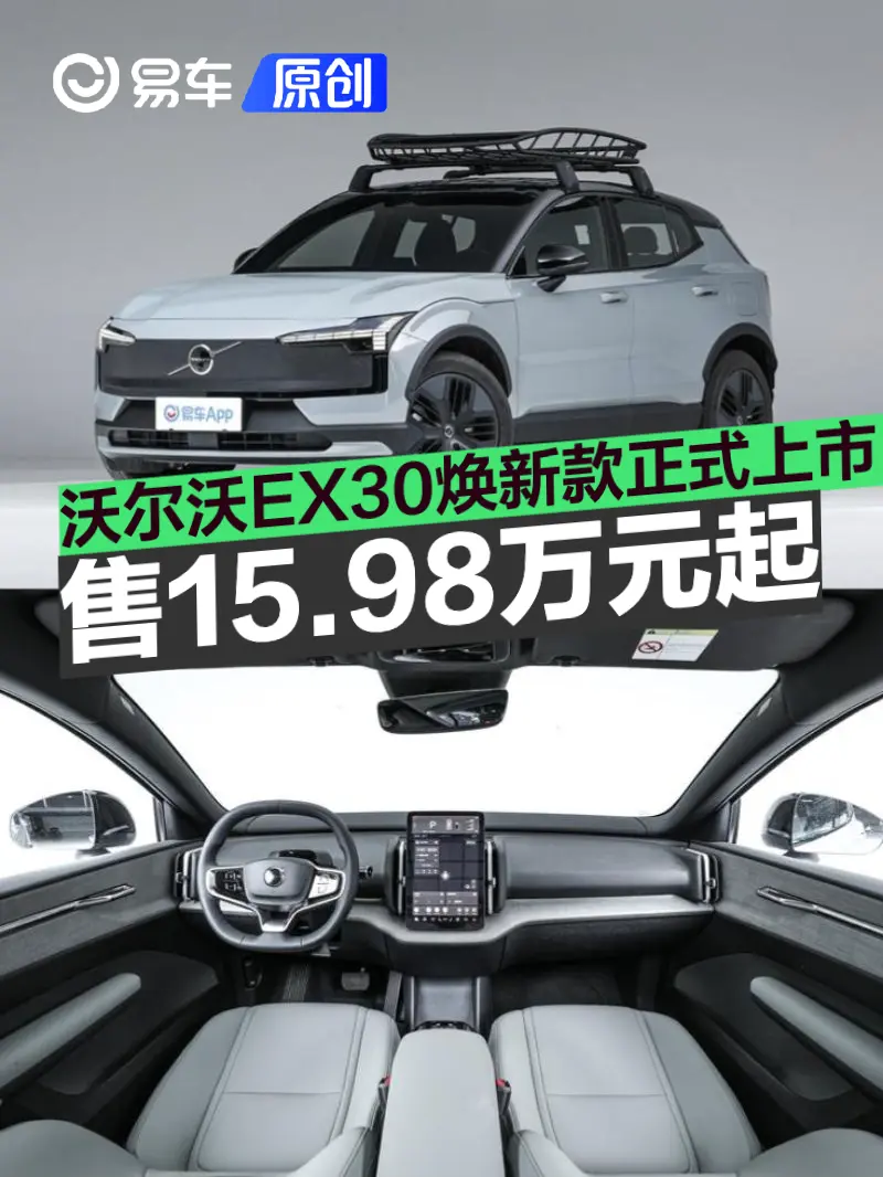 易车讯 3月20日,沃尔沃官方宣布旗下EX30焕新款迎来正式上市,新车共推出4款车型,限时参考尊享价15.98万元—21.98万元,同步推出多重限时大定权益,包括3年基础整车质保、免费三电系统8年16万公里质保、3年免费沃尔沃救援服务以及首任车主4年免费媒体数据流量权益。