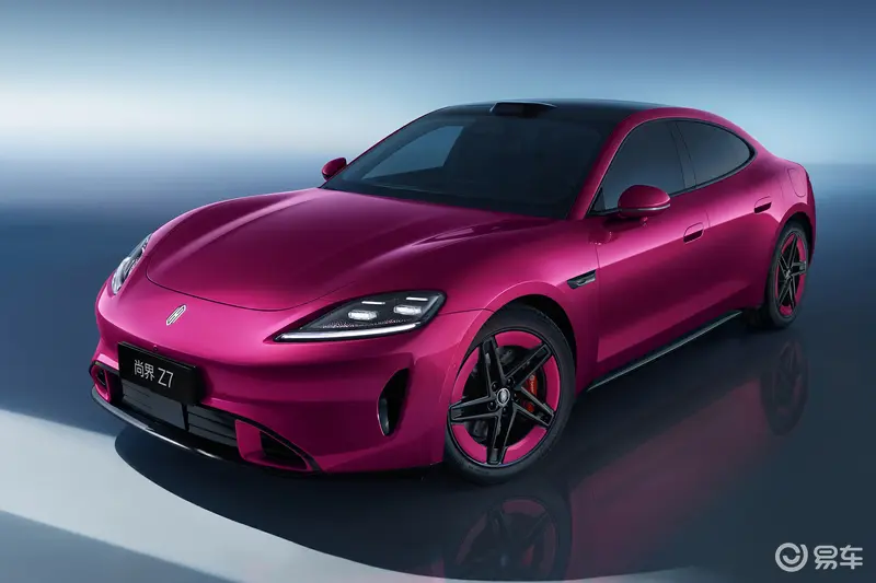 尚界Z7前脸采用了低矮的“尖头”设计,并搭载了都市流光大灯,灵感源自都市流光,外观采用钻石切割设计,其中融入中式留白意境,408个镭射发光点配合分割式的透镜光路架构,营造出璀璨星河般的夺目灯效与通透呼吸感。同时新车大灯、外后视镜及尾灯內,均配有辅助驾驶小蓝灯。此外,新车还配备了主动式进气格栅、毫米波雷达以及发光车标等。尚界Z7提供电光紫粉,琥珀金绿,晚山新绿等多款车色供选择。