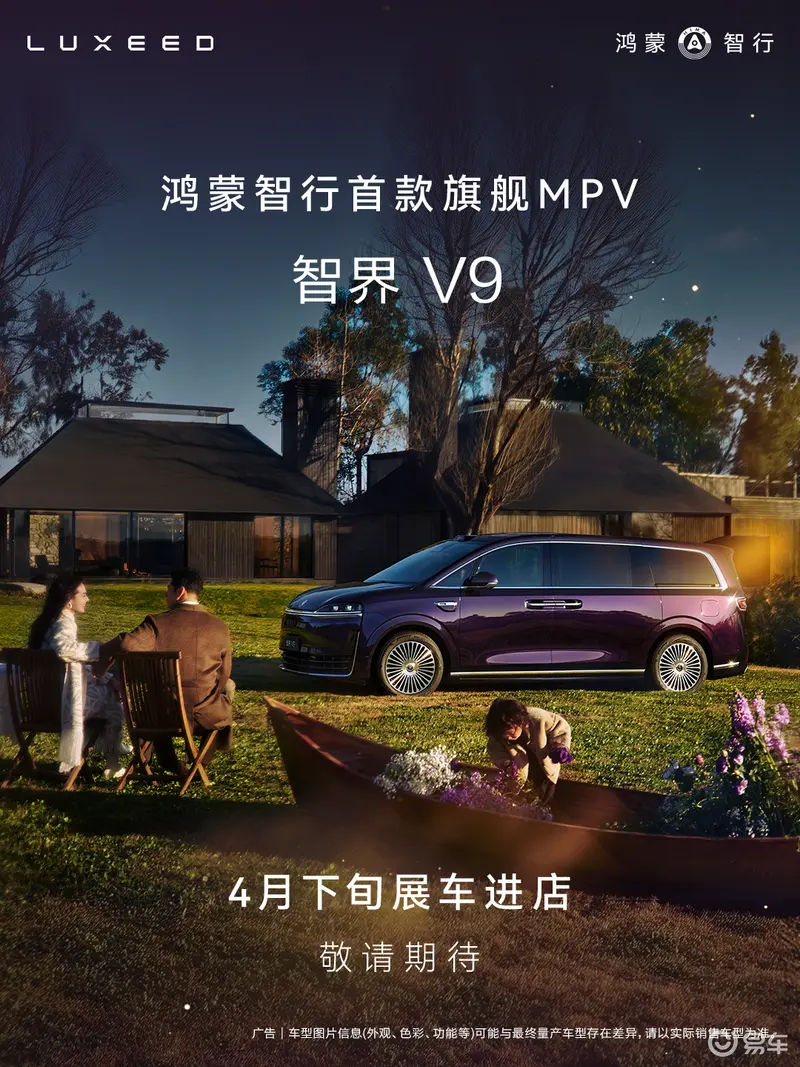 易车讯 我们从官方获悉,智界V9展车将于4月下旬陆续到店。新车将首批搭载全球量产最高规格896线双光路图像级激光雷达和华为乾崑智驾ADS 4高阶版,同时将搭载途灵平台及后轮转向系统。
