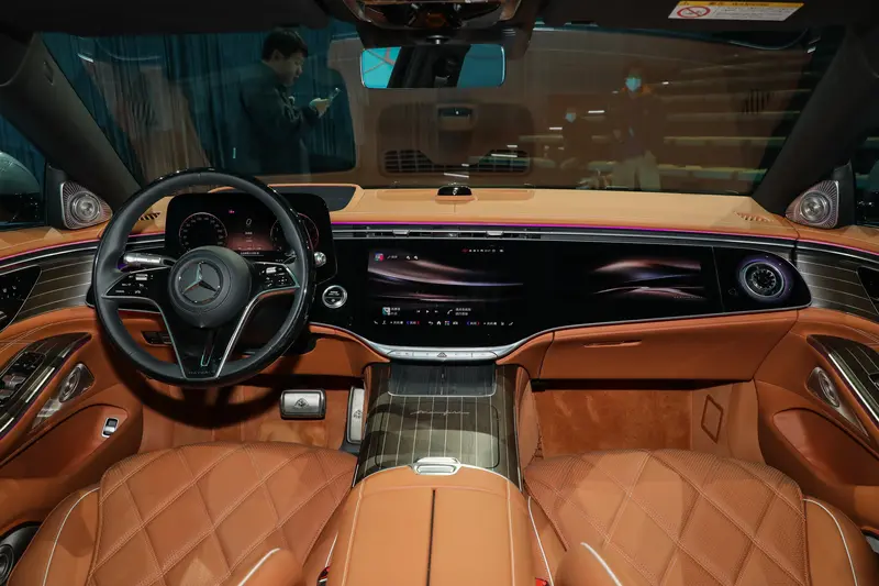 新一代迈巴赫S级轿车搭载奔驰自研的MB.OS架构,贯通辅助驾驶、智能座舱与性能表现三大功能域,构建起高效、统一且可持续进化的多域融合智能生态。前排采用一体化玻璃面板设计,将14.4英寸中央显示屏与12.3英寸前排乘客显示屏精妙融合。12.3英寸数字仪表盘采用迈巴赫专属设计,舒展的雕塑感造型搭配可选装的3D显示功能,营造深邃惊艳的视觉层次。AI赋能的升级版奔驰虚拟助手,亦以专属玫瑰金色三叉星徽形象焕新呈现。