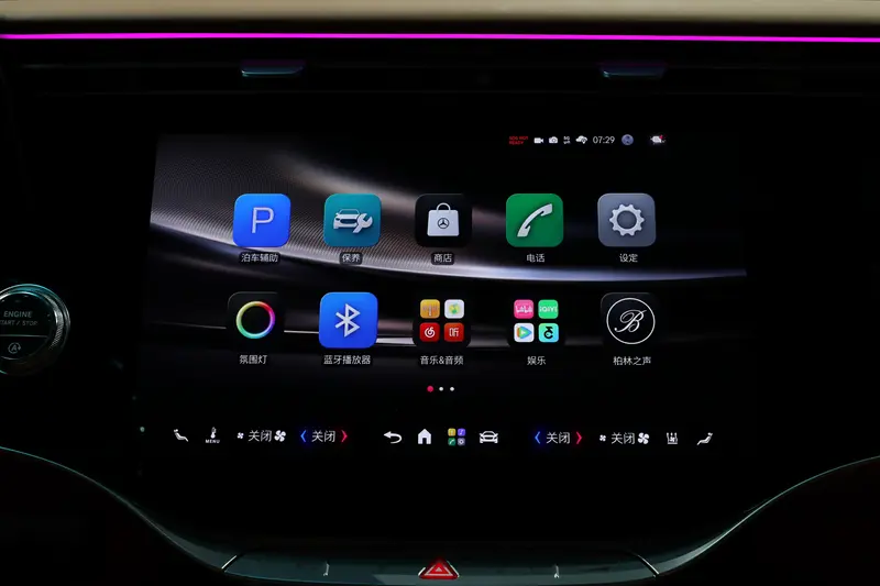 主动式环境氛围灯包含199颗LED光源、10种色彩组合以及64色独立可调色谱,其中包括迈巴赫专属的玫瑰金与紫水晶色调。氛围灯可以响应语音指令、 空调调节与辅助驾驶系统提示,实现更心有灵犀的人车交互体验。