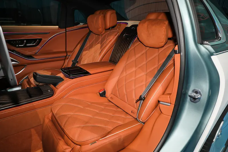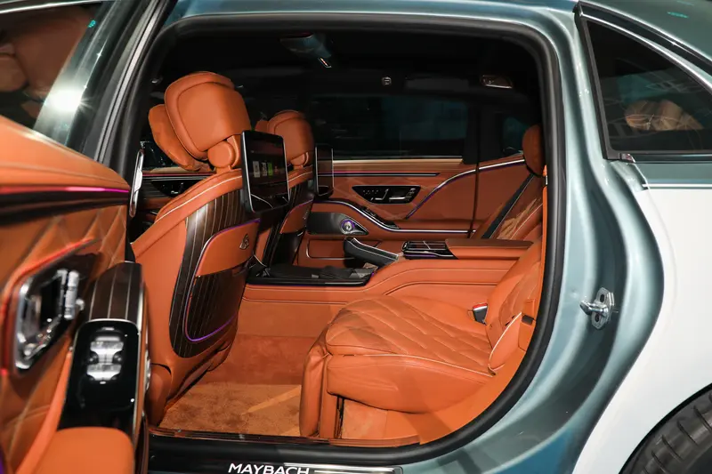 内饰方面,新一代梅赛德斯-迈巴赫S级轿车采用全新升级的环抱式座舱设计。中控台以更大面积的饰板铺陈,并提供丰富的材质选择,如新增的炭灰色开孔型橡木饰件,以及琥珀棕色开孔型鱼骨纹木饰件。大面积Nappa真皮包覆内饰,从座椅、方向盘、延伸至仪表板与车窗框架。