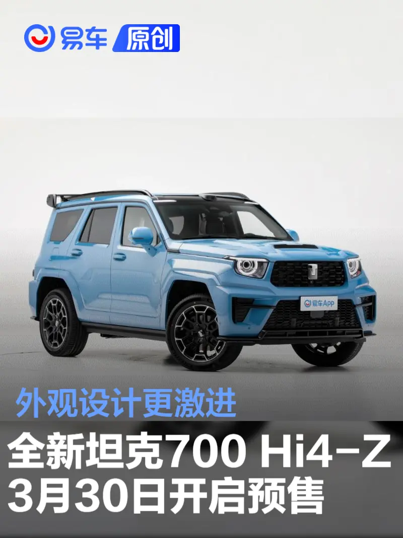 易车讯 3月25日,长城汽车坦克品牌CEO谷玉坤宣布,全新坦克700 Hi4-Z将于3月30日开启预售。新车拥有全新外观设计及配色,并搭载Hi4-Z动力系统。