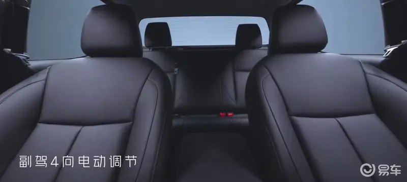 座椅方面,主驾座椅配备8向电动调节,并支持座椅通风和加热功能,副驾座椅支持4向电动调节,后排还配备了PVC零压座椅。