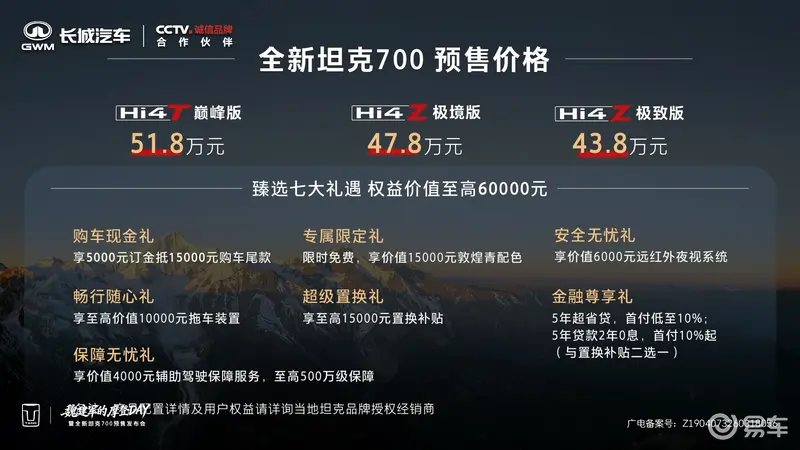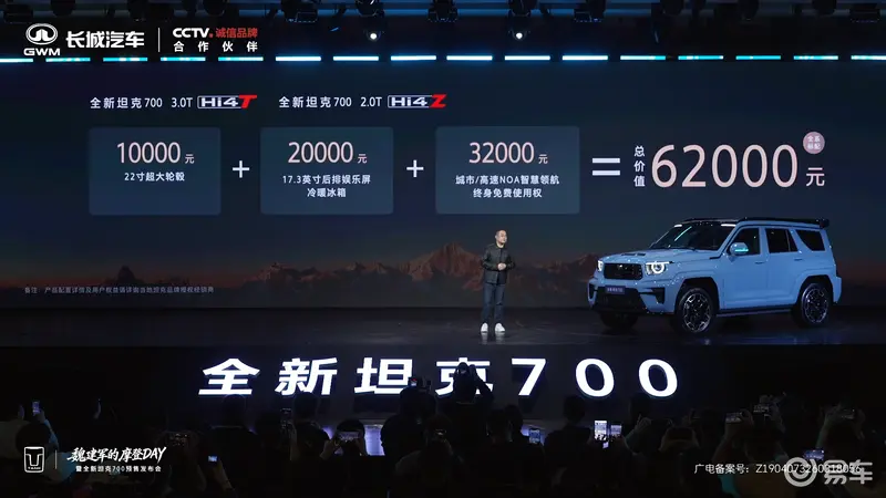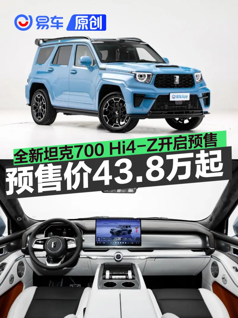 易车讯 3月30日,全新坦克700正式开启预售,预售价区间43.8-51.8万元。全新坦克700拥有全新外观设计及配色,并搭载Hi4-Z动力系统。