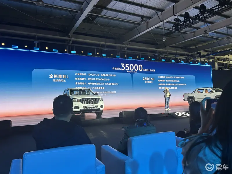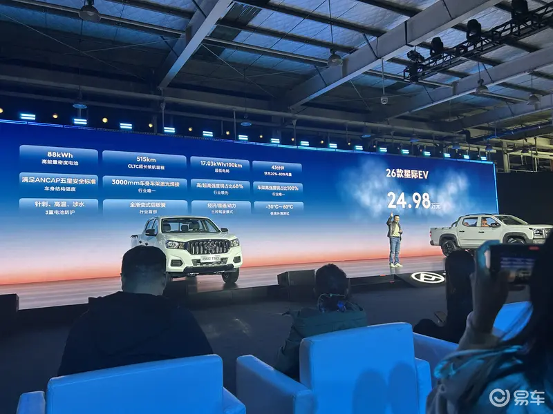易车讯 3月30日,上汽大通旗下多款皮卡正式上市,其中26款星际EV售价24.98万元,全新星际L售价10.88-15.98万元,26款T60售价7.98-10.18万元。