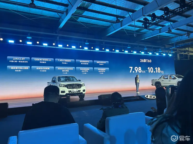26款T60拥有1.45m³货箱容积,搭配965mm二排腿部空间,既能高效承载重载货物,也能保障乘坐舒适性;动力层面,新车搭载获评“中国心”十佳的上汽π2.0T柴油发动机,更配备DPF无感自洁再生技术,动力充沛且用车经济省心;安全层面,新车遵循ANCAP五星安全设计标准,采用激光焊接工艺,车身高/超高强度钢占比达70%。