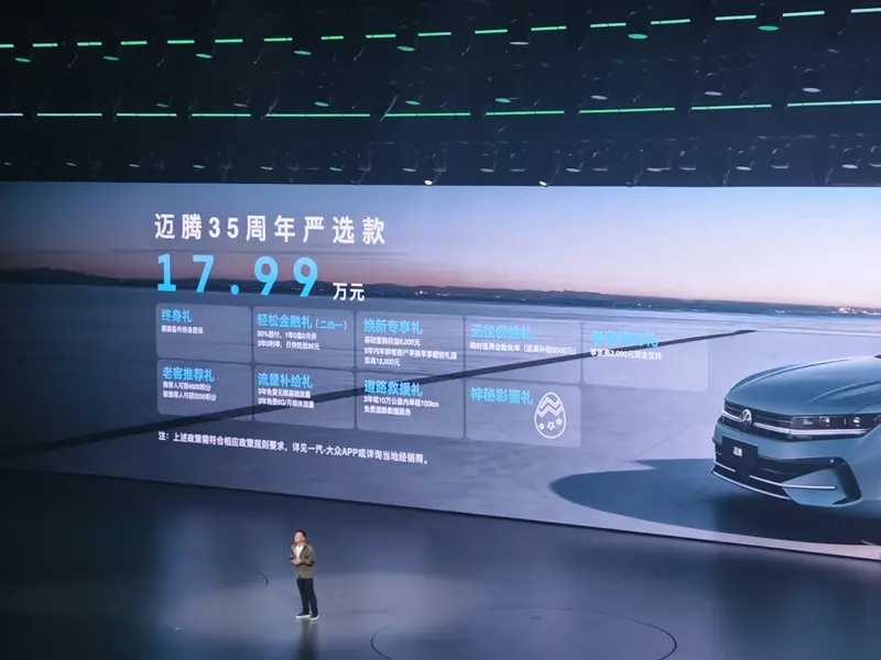 易车讯 3月31日,在一汽-大众春季新品发布会上,迈腾35周年严选款迎来正式上市,售价17.99万元。同时,官方推出终身礼、轻松金融礼、焕新专享礼、无忧保险礼、老客增购礼、老客推荐礼、流量补给礼、道路救援礼、什么彩蛋礼。