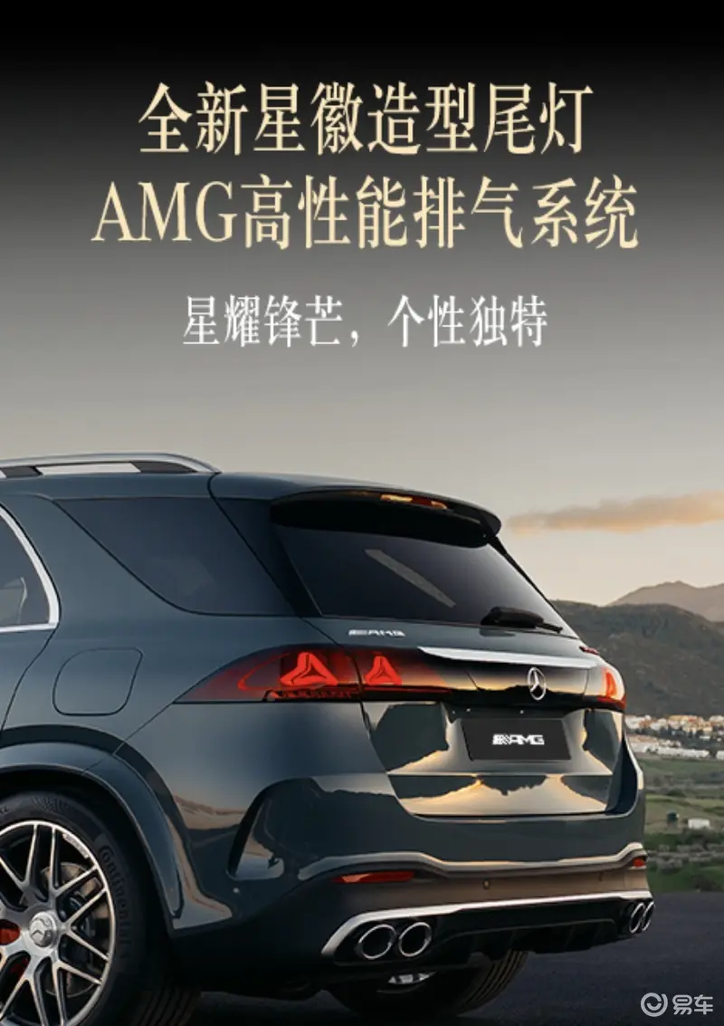 新一代AMG GLE 53前脸采用升级的AMG家族垂瀑式格栅造型、全新设计的进气口与标志性的LED照明系统。全新星徽造型尾灯搭配标志性的AMG高性能排气系统,呈现同样耀眼的动感姿态。首次应用于AMG系列的全新MANUFAKTUR哑光时空银色车漆,则勾勒出整车冷峻锋锐的姿态。此外,MANUFAKTUR至臻高定项目为客户提供多种定制化选择,包含多种MANUFAKTUR车漆以及多款AMG轻合金轮毂。