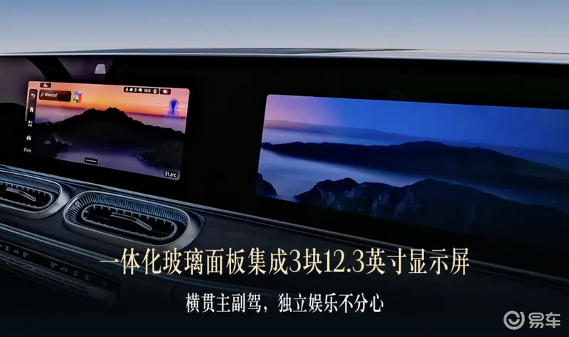 新一代GLE家族搭载搭载奔驰自研的MB.OS架构,从视觉呈现到人机交互,智能座舱的数字化体验全面提升。新一代GLE家族前排仪表台采用浑然一体的全新设计,一体化玻璃面板下方集成3块12.3英寸显示屏,配合全新升级的零层级界面,营造更具现代感的数字豪华氛围。前排乘客显示屏搭载采用“双视区光学控制技术(DLC)”的“隐私模式”,在为副驾提供完整独立娱乐体验的同时,也可根据需要防止驾驶者因屏幕画面内容分心,提升行车安全性。