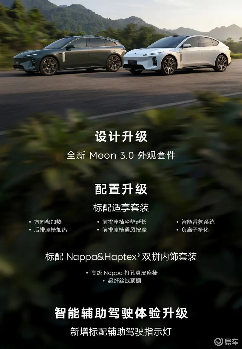 内饰方面,新车搭载15.6英寸AMOLED中控屏、18.8英寸W-HUD、超清流媒体内后视镜、增强版7.1.4沉浸声音响系统、11层座椅舒适结构。标配适享套装和Nappa&Haptex双拼内饰套装。
