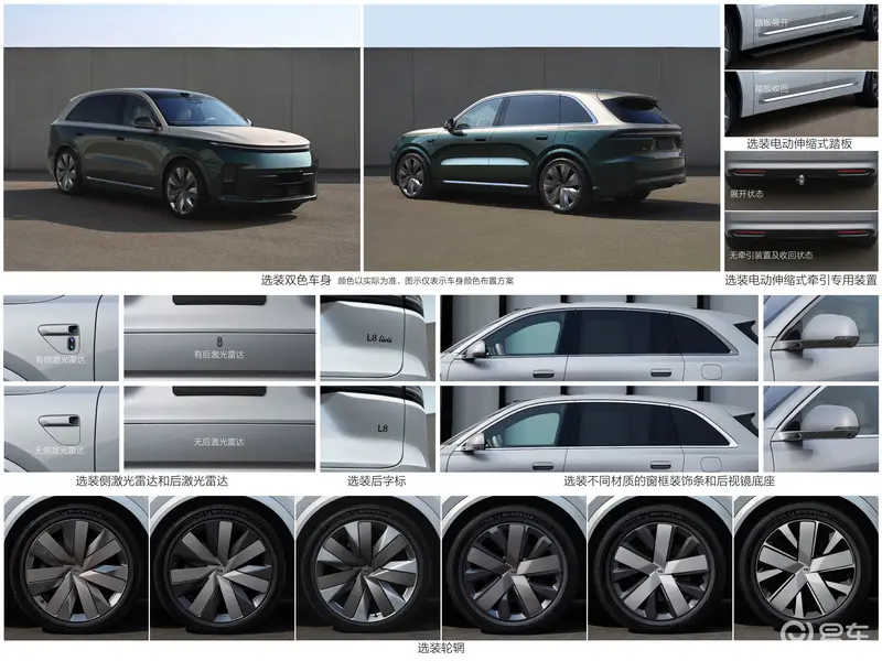 从选装配置来看,新一代理想L8提供双色车身,并推出Livis版本。同时,新车采用大五座布局。