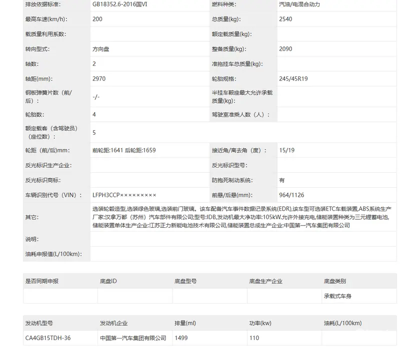 易车讯 4月9日,在工信部最新一期申报信息中,我们发现了全新红旗H7的身影。新车采用了红旗家族化设计语言,搭载1.5T插电混动系统。