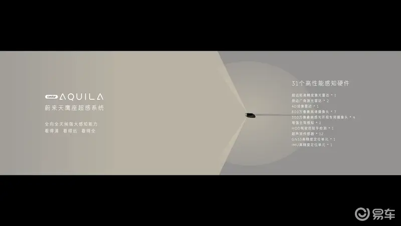 侧面来看,新车采用大气简约的车身线条,深色的车窗营造出悬浮车顶的设计效果。值得一提的是,新车Cedar AQUILA侧向广角激光雷达下方配备了9条横向灯线,并加入了辅助驾驶指示灯,仪式感拉满。其余配置方面,新车搭载隐藏式门把手,并搭载精致霸气的大尺寸多辐轮圈。