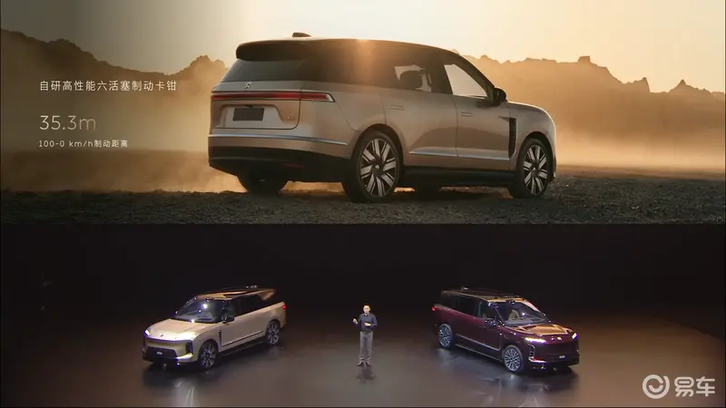 动力方面,蔚来ES9采用最新一代全域900V高压架构,采用高性能感应异步+永磁同步电机,综合功率520千瓦,综合扭矩700牛·米,百公里加速仅需4.3秒。搭载自研高性能六活塞制动卡钳,100-0km/h制动距离仅需35.3米。电池方面蔚来ES9搭载来自宁德时代的102kWh电池组,纯电续航里程分别为620km、600km、580km。此外,新车还搭载AQUILA天鹰座超感系统、天行全主动悬架系统、天行线控转向等。