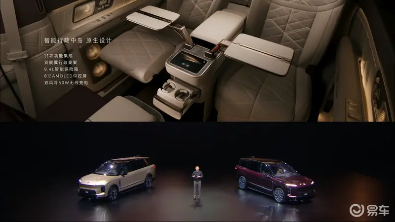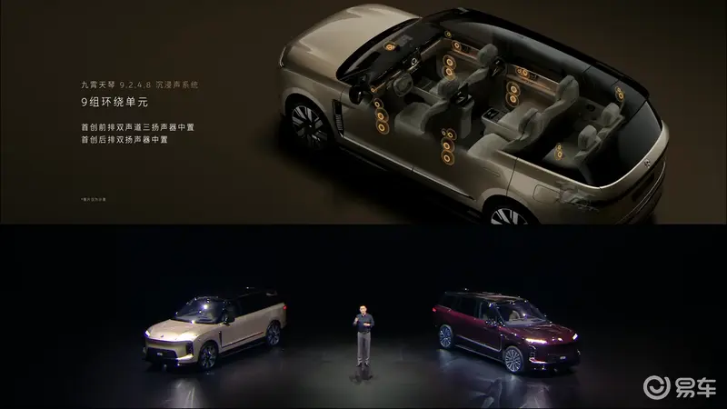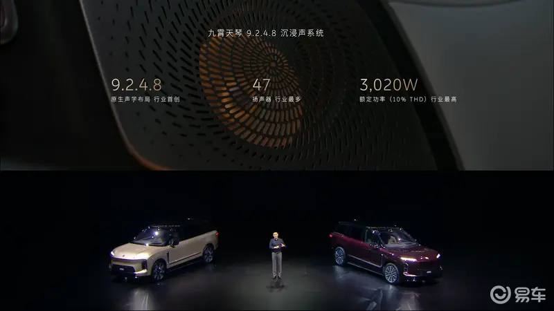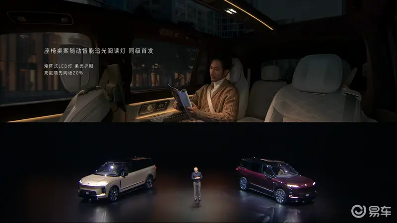 新车同级首发座椅桌案随动智能追光阅读灯,采用矩阵式LED灯,柔光护眼,亮度领先同级20%。ES9还搭载行业首创的九霄天琴9.2.4.8沉浸声系统,拥有47个扬声器,额定功率达到行业最高的3020W。