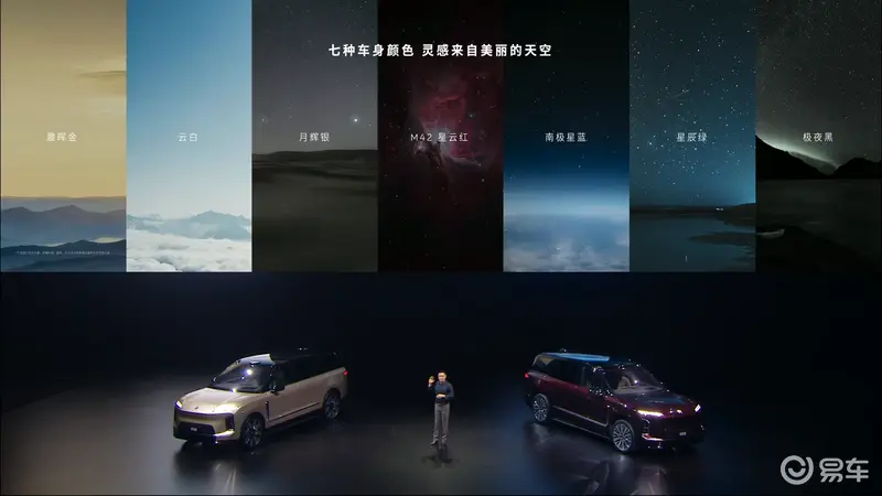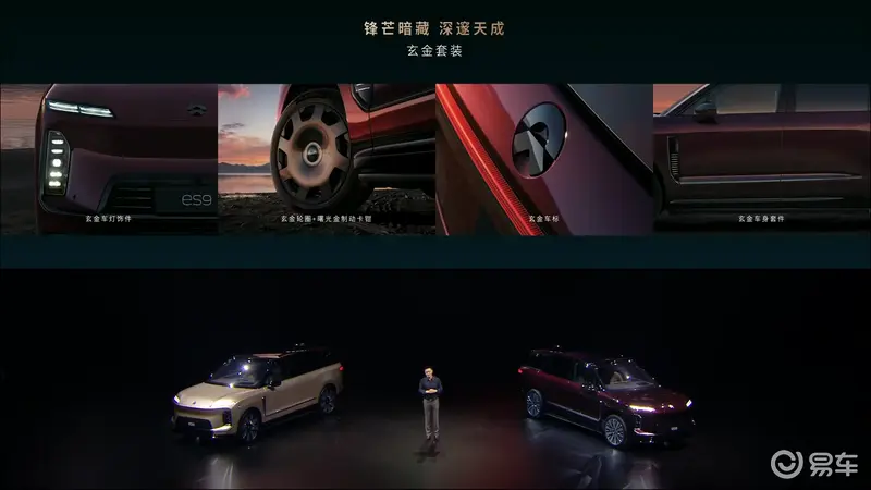 ES9拥有晨晖金、云白、月辉银、M42 星云红、南极星蓝、星辰绿和极夜黑七种车身颜色,其中晨晖金为全新颜色,灵感源自大漠晨曦,金影流晖,该车漆采用三层高深度珠光工艺,超千万颗微米级珠光片。此外,ES9还推出了地平线特别版,并且支持选装玄金套装,包含玄金车灯饰件、玄金轮圈 +曙光金制动卡钳、玄金车标以及玄金车身套件。