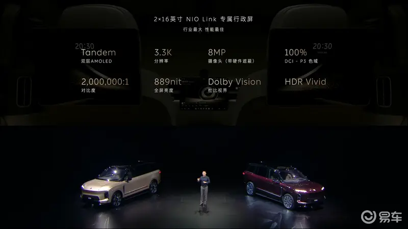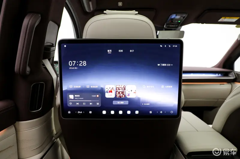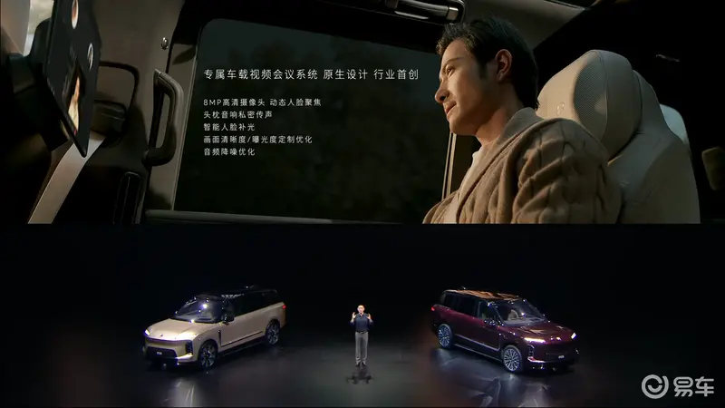 新车后排还行业首创专属车载视频会议系统,8MP高清摄像头可动态人脸聚焦,头枕音响私密传声,智能人脸补光,画面清晰度/曝光度定制优化,音频降噪优化。