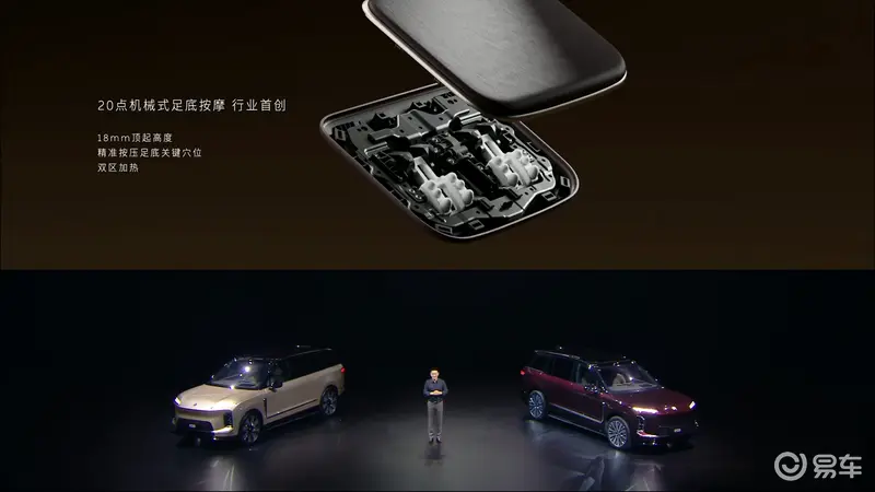 后排方面,蔚来ES9搭载了与品牌旗舰轿车ET9一致的豪华配置,采用了智能行政中岛设计,集成了11项功能,拥有双展翼行政桌案、8寸AMOLED中控屏以及双风冷50W无线充电。ES9二排可选中岛、通道两种座椅布局,六座通道版延续行政级豪华内核。ES9二排搭载飞航零重力行政座椅,行业首创20点机械足底按摩,并拥有智能五区独立空调。新车后排采用两块16英寸专属行政屏,分辨率达到3.3K,屏幕角度可随座椅位置调节,任意姿态下都能拥有舒适的视角。